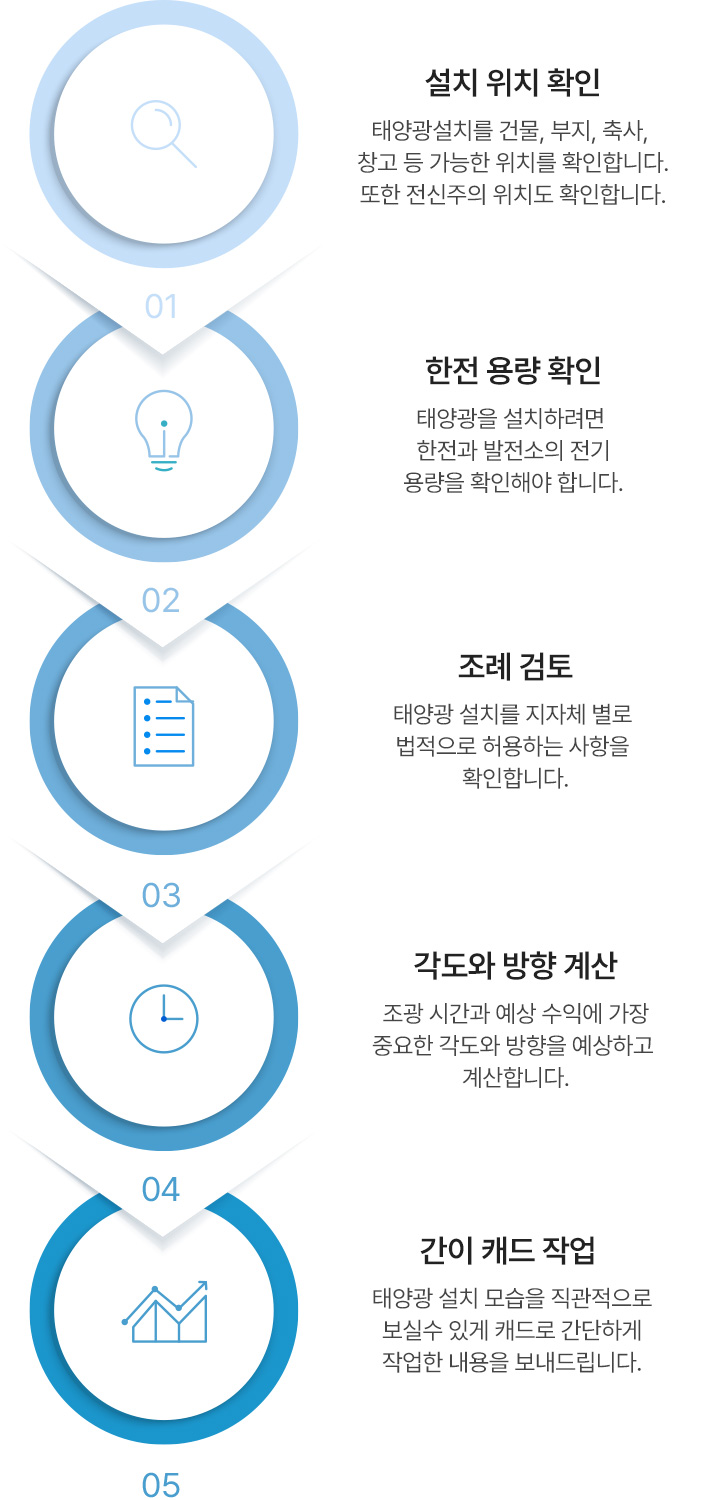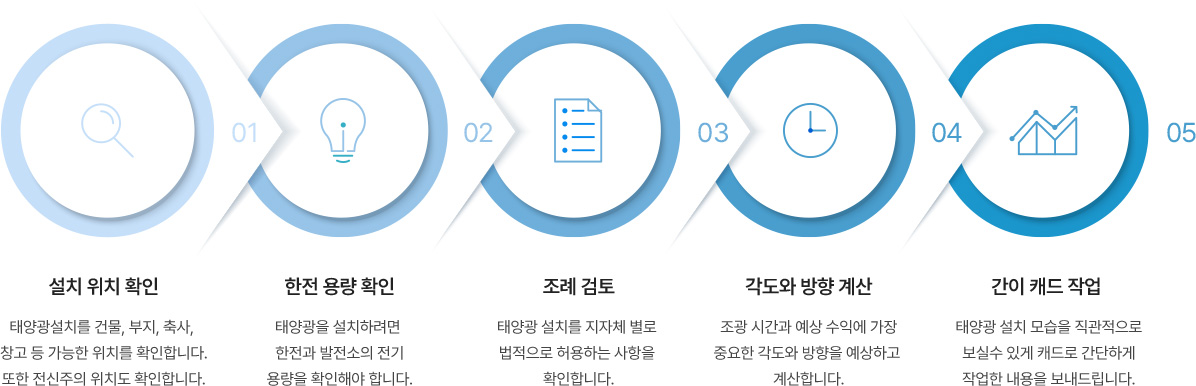 모든 조건을 확인 해보고 태양광 사업의 가능성과 최적화를 진행합니다.