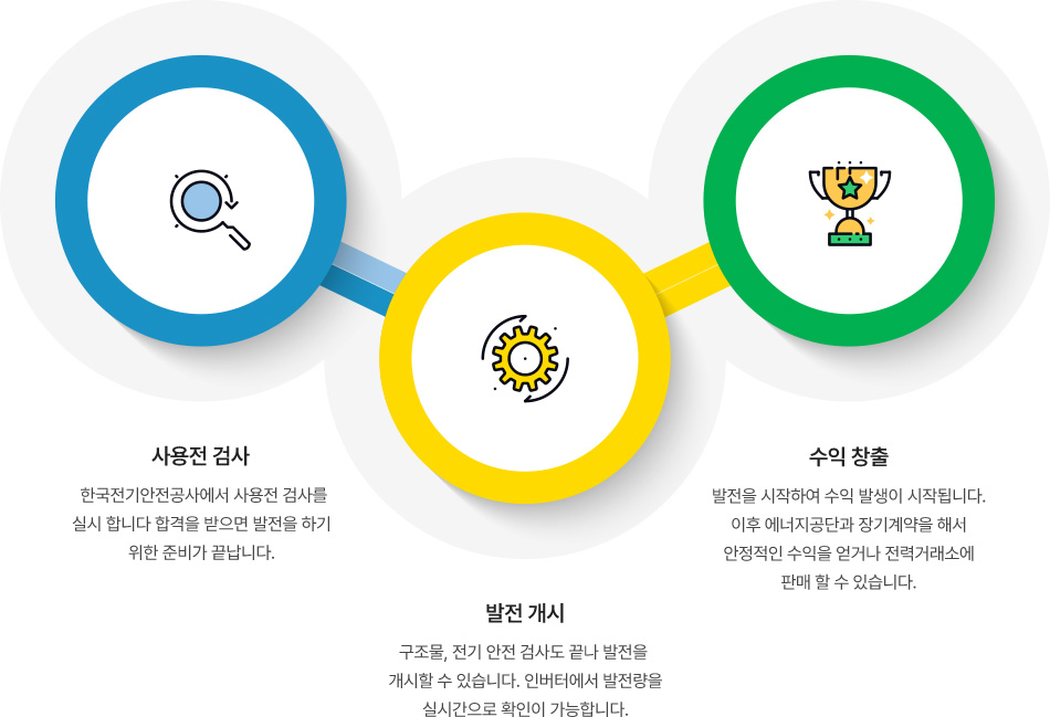 모든 과정을 끝내고 사용전 검사를 받은 후 발전을 개시합니다.