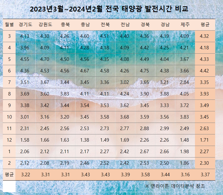 발전 시간이 높으며 겨울에 가장 낮게 나타납니다.