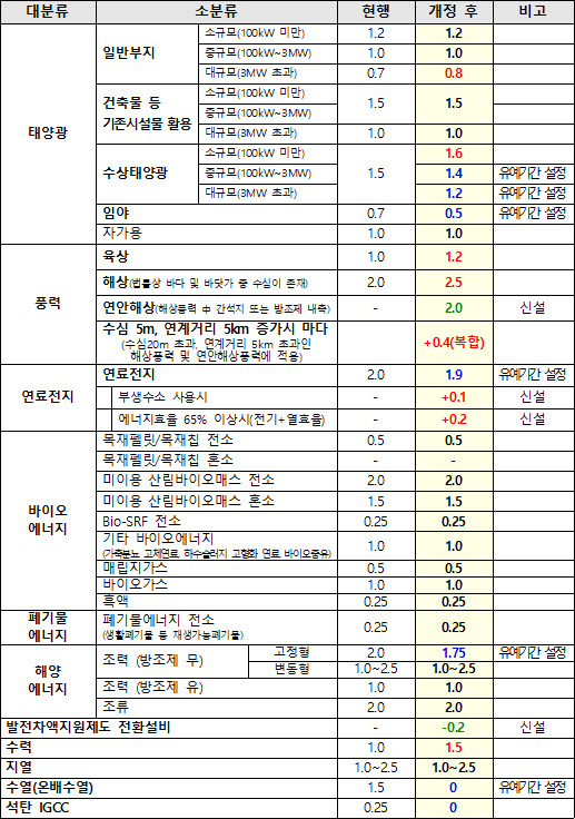 에너지원, 설치유형에 따라 REC에 대한 가중치를 다르게 적용받게 됩니다.